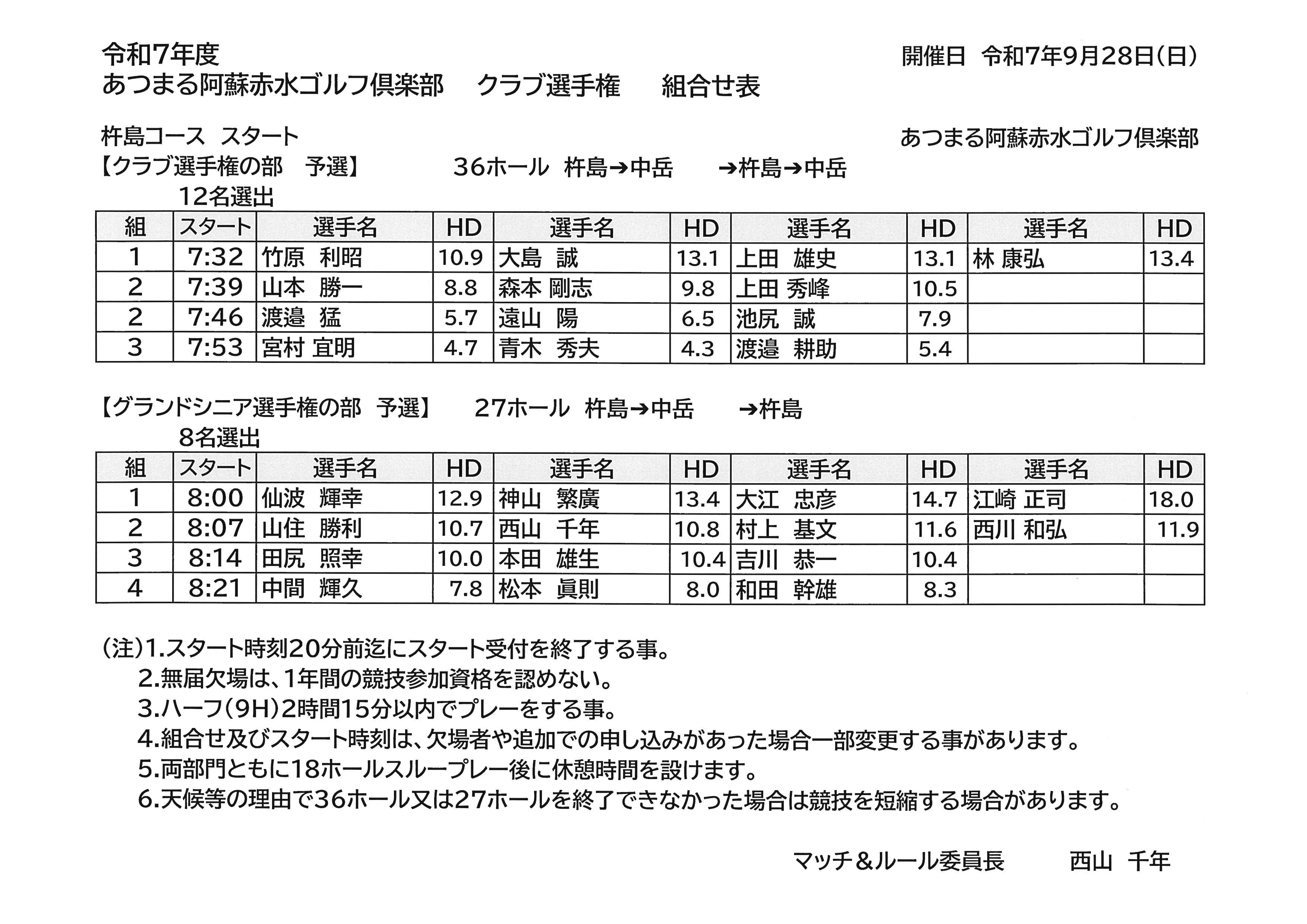 令和7年度 クラブ選手権組合せ