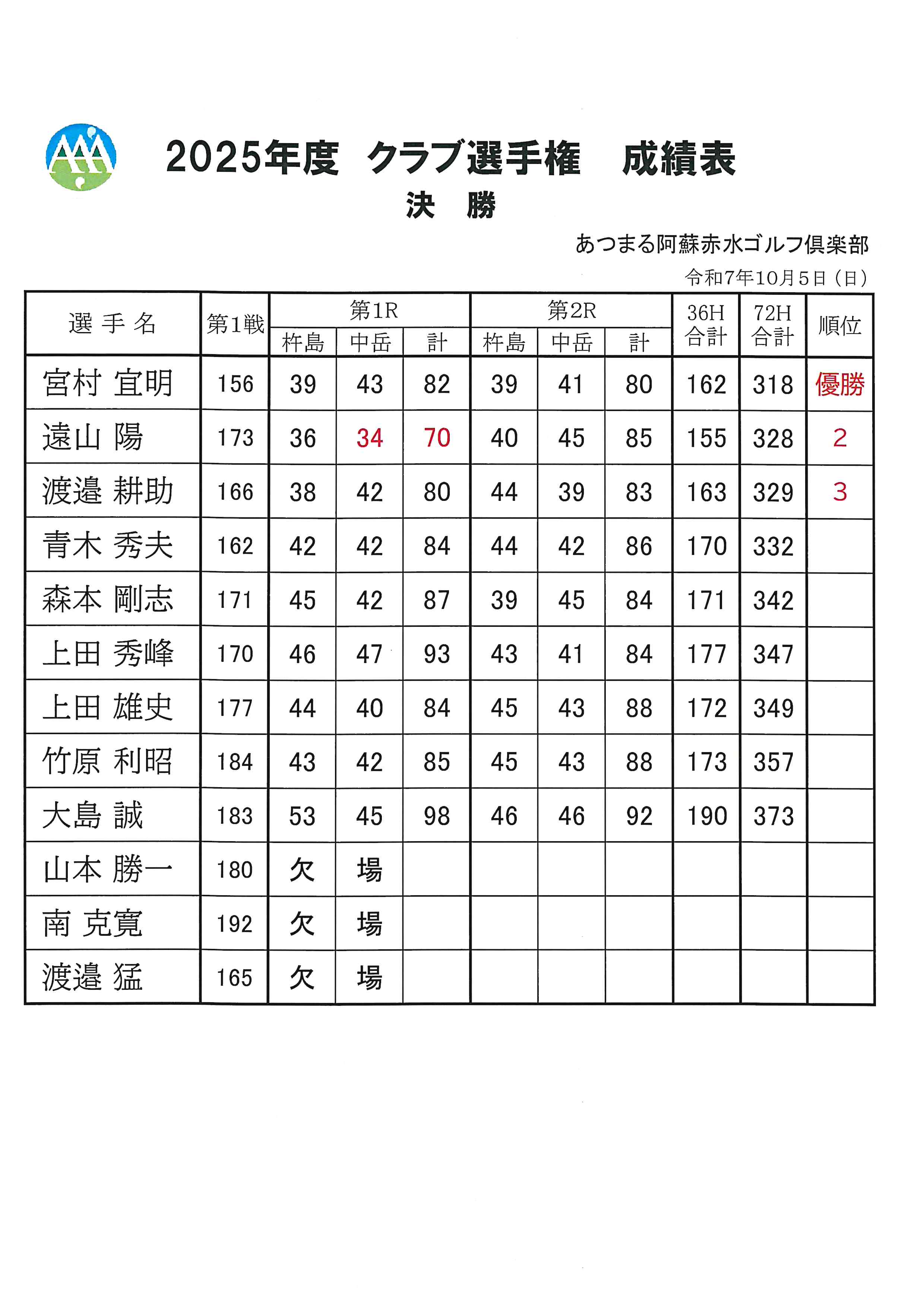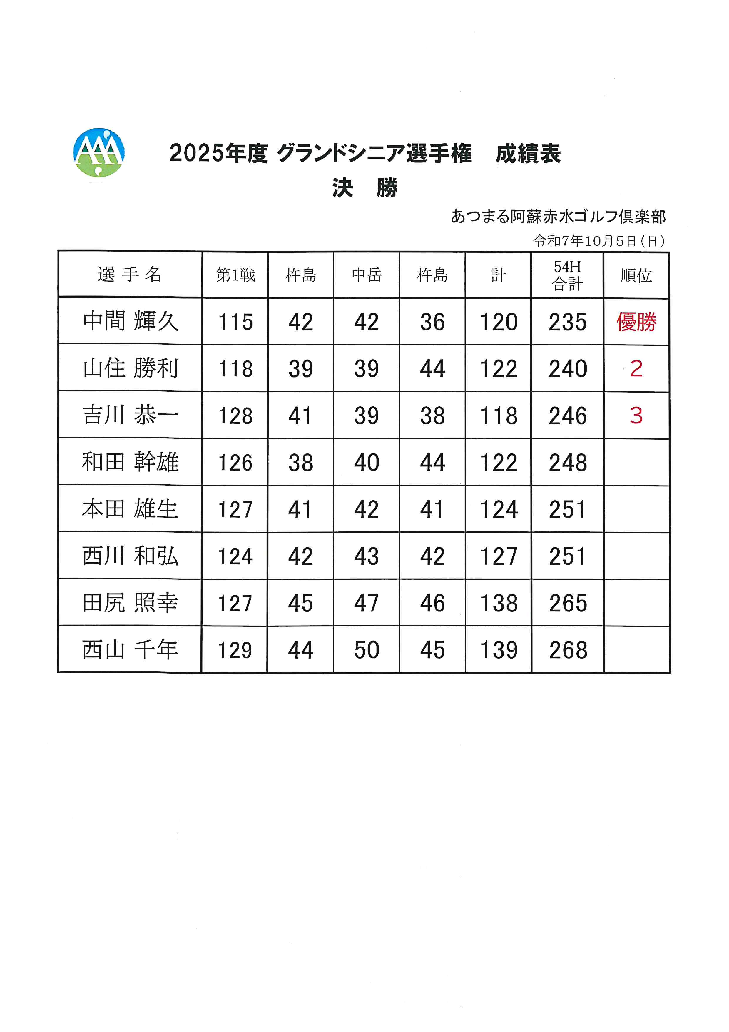 令和7年度 クラブ選手権・グランドシニア選手権【決勝】成績表